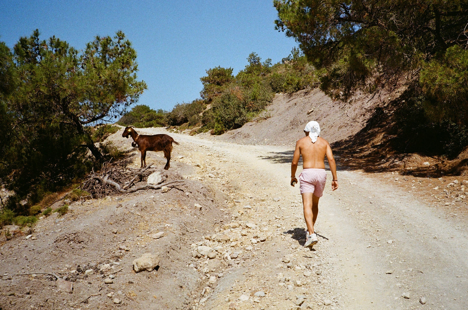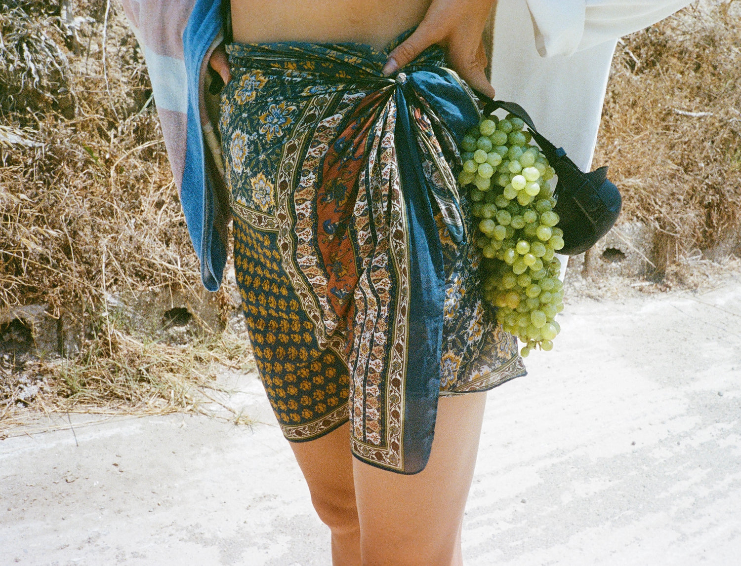 I have such a distinct memory of my mother wrapping thin fabric around her waist every time we went to the beach when I was a child. When I went back this summer, Lotta took the Drake’s scarf I’d packed from New York, wrapped it around her waist, and carried my old diving mask and Barcelona towel on our walk to the beach. All of these elements coming together in this one image is a personification of my journey through the years—from Kefalos to New York, from childhood to adulthood.