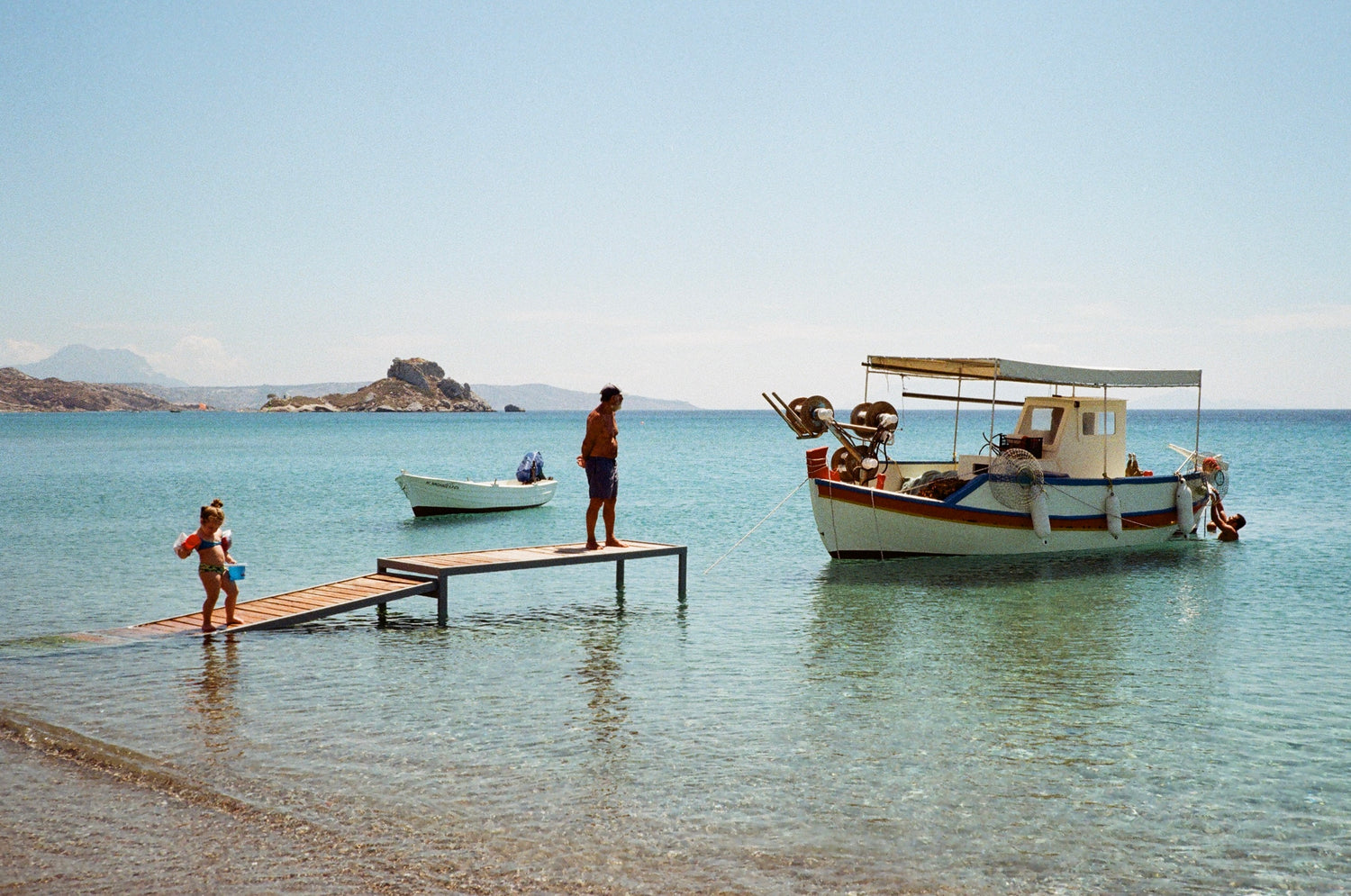 When I was young, my godfather would take me on his “Kamari Boat” to pick up tourists at the harbor. He would take them fishing near the docks of a remote beach, where he would cook with them, drink with them, and dance with them. He was enchanting; he showed me that hospitality is not bound by language. The memories he gave these strangers—in this boat and on this beach—transcend any barriers he could have had with anyone who climbed aboard.