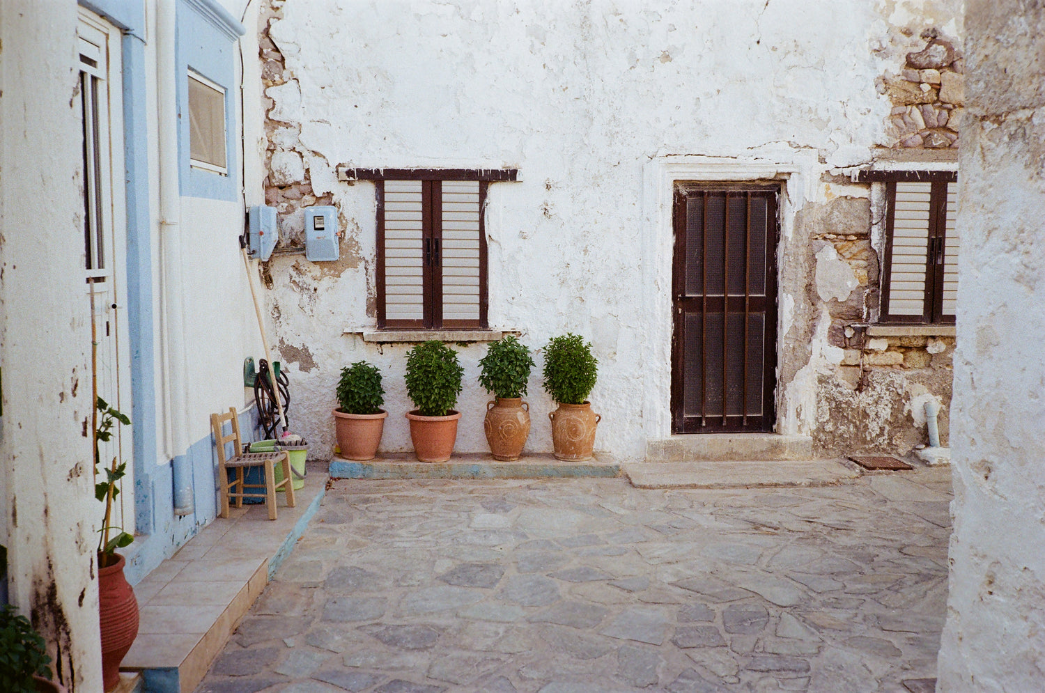 Oftentimes, for me, the camera serves as an instrument that facilitates the ceasing of time. It serves both as a piece of machinery that can capture a moment, and a medium through which I can be transported to different stages in my life. My village of Kefalos, in Greece, serves a similar function for me. The juxtaposition of the past and the present is so clearly visible. It captures the perfect imperfectness of the little details in my town, forming the narrative of how I recall the memories of me and my ancestors. This series of fifteen photos serves as a physical manifestation of how I experience time and its intersection with my idea of home.